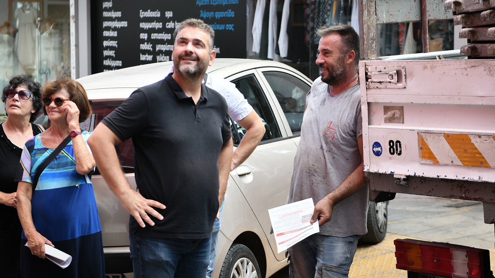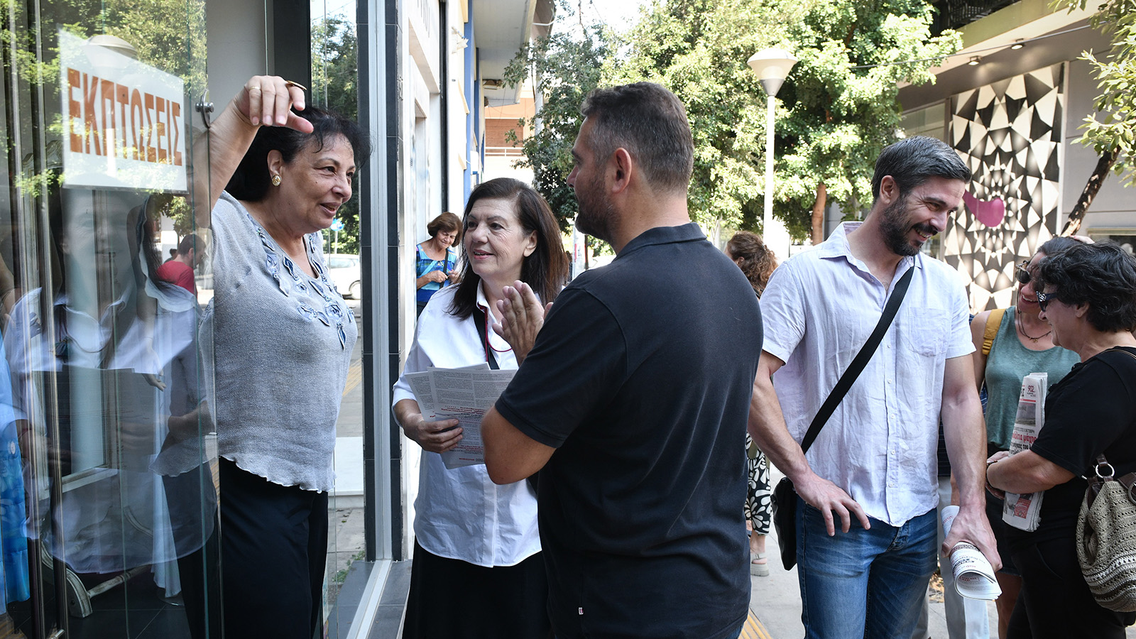 Κατά την περιοδεία συνομίλησαν με κατοίκους, εργαζόμενους στα καταστήματα και τους αυτοαπασχολούμενους της πόλης. Η συζήτηση εκτός από τα προβλήματα που αντιμετωπίζουν οι λαϊκές οικογένειες αφορούσε και το νέο νομοσχέδιο της κυβέρνησης που στόχο έχει να γιγαντώσει την ευελιξία και να εντατικοποιήσει την εργασιακή εκμετάλλευση των εργαζομένων.