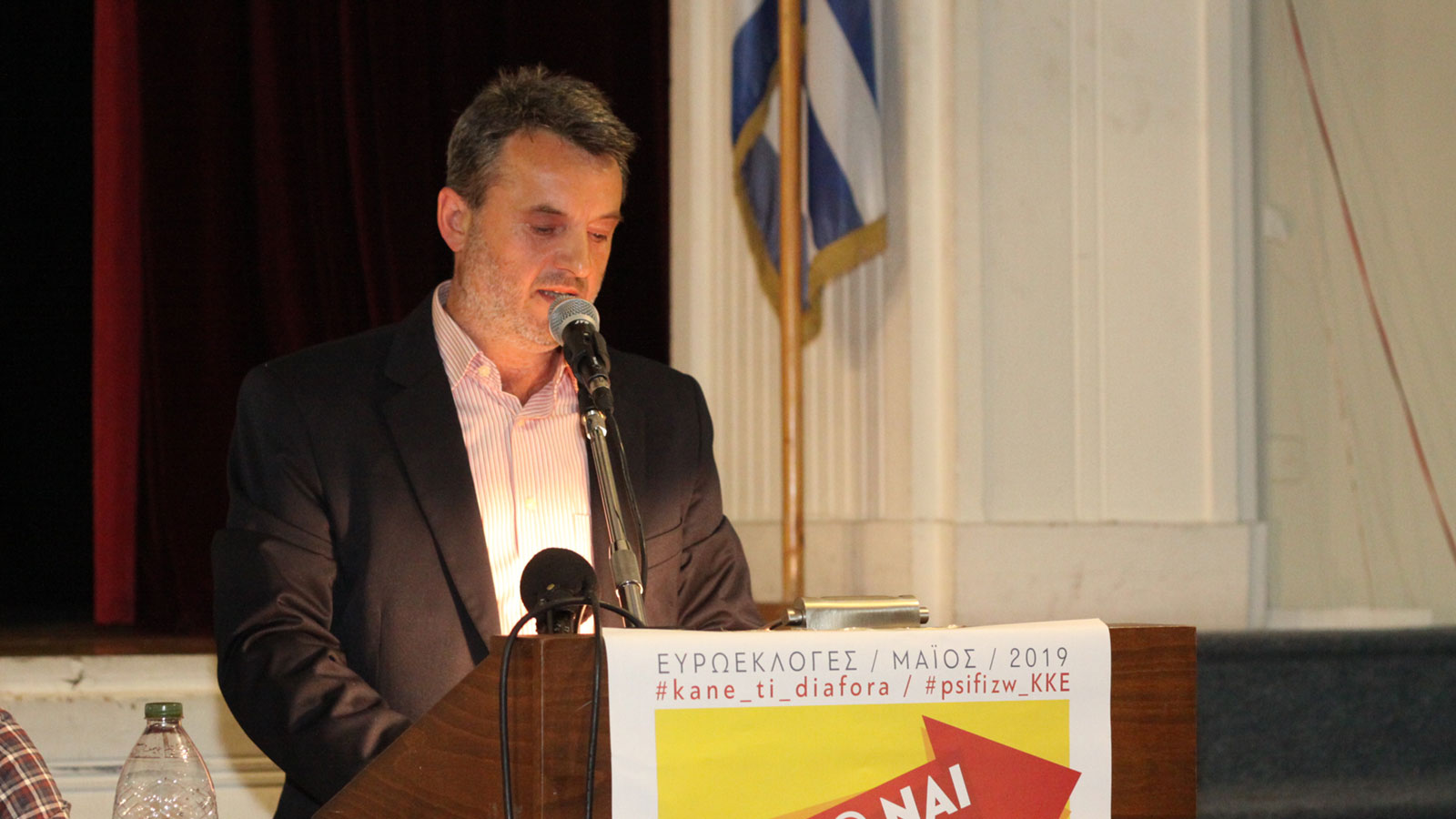 ομιλία του ο Κώστας Παπαδάκης, μέλος της ΚΕ του ΚΚΕ, ευρωβουλευτής και εκ νέου