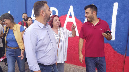 Μαζί του ήταν ο Γιάννης Κορφιάτης υποψήφιος δήμαρχος Νέας Σμύρνης με τη «Λαϊκή Συσπείρωση», οι νυν δημοτικοί σύμβουλοι Άγγελος Βρεττός και Γιάννης Κιουλάνης, η Δέσποινα Ρουμανέα υποψήφια Περιφερειακή σύμβουλος Νότιου τομέα με τη «Λαϊκή Συσπείρωση», ο Δημήτρης Βιτάλης μέλος της ΚΕ του ΚΚΕ και η Ελένη Μητικάρη μέλος της ΚΕΟΕ του ΚΚΕ.