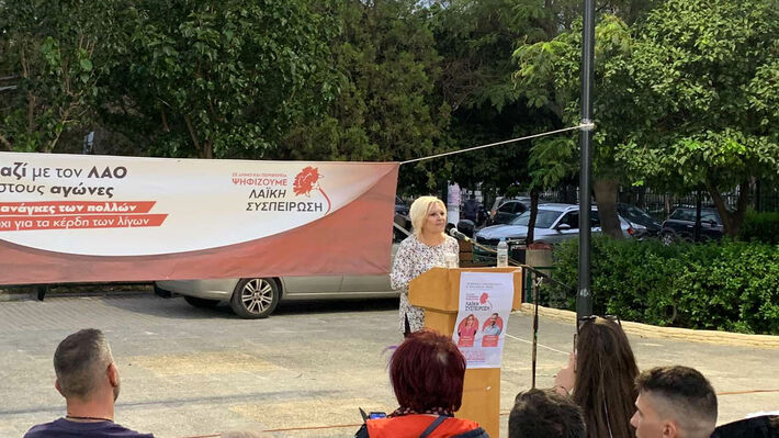 Την κεντρική ομιλία στη συγκέντρωση την έκανε η Στέλλα Βαλαβάνη υποψήφια δήμαρχος Μοσχάτου – Ταύρου με τη «Λαϊκή Συσπείρωση (Δείτε περισσότερα για την εκδήλωση εδώ)