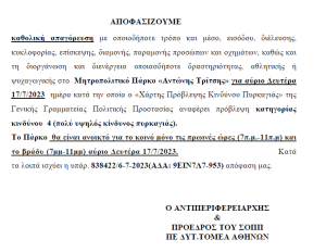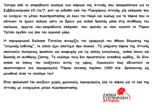 Να ανοίξουν χωρίς χρονικούς περιορισμούς όλα τα πάρκα για το λαό της Αττικής με ενισχυμένα μέτρα πυροπροστασίας.