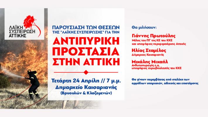 αντιπυρική προστασία στην Αττική, διοργανώνει η «Λαϊκή Συσπείρωση» Αττικής.