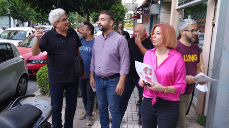 Μαζί τους ήταν και ο υποψήφιος Περιφερειακός Σύμβουλος Νότιου Τομέα, Μάνος Σαριδάκης και οι νυν δημοτικοί σύμβουλοι Μοσχάτου – Ταύρου, Χριστίνα Δολιανίδη και Τόνια Συριανού.
