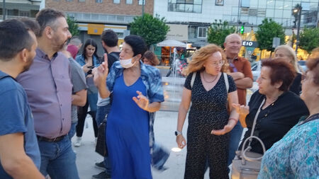 Μετά το πέρας της περιοδείας συγκεντρώθηκαν στο περίπτερο της «Λαϊκής Συσπείρωσης» Μοσχάτου – Ταύρου στην πλατεία Μεταμόρφωσης, όπου απηύθυναν χαιρετισμούς η Στέλλα Βαλαβάνη και ο Γιάννης Πρωτούλης.