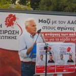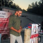 Στην συγκέντρωση παρευρέθηκε και έκανε χαιρετισμό ο Γιάννης Πρωτούλης, Υποψήφιος Περιφερειάρχης Αττικής με τη Λαϊκή Συσπείρωση, μέλος του ΠΓ της ΚΕ του ΚΚΕ.
