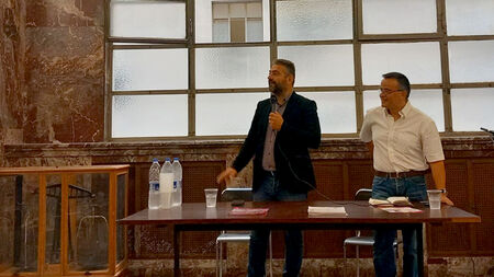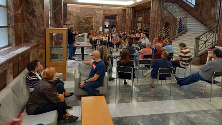 Σε συγκέντρωση εργαζομένων στο υπουργείο Ανάπτυξης και Επενδύσεων μίλησε ο Γιάννης Πρωτούλης, υποψήφιος περιφερειάρχης Αττικής με τη «Λαϊκή Συσπείρωση» το πρωί της Παρασκευής. Τον λόγο επίσης πήρε ο Νίκος Ντόμπρεφ, πρόεδρος της Ομοσπονδίας Συλλόγων Εργαζομένων του υπουργείου και υποψήφιος περιφερειακός σύμβουλος. Μαζί τους ήταν και η Αριάδνη Παγανέλη, υποψήφια δημοτική σύμβουλος Αθήνας.